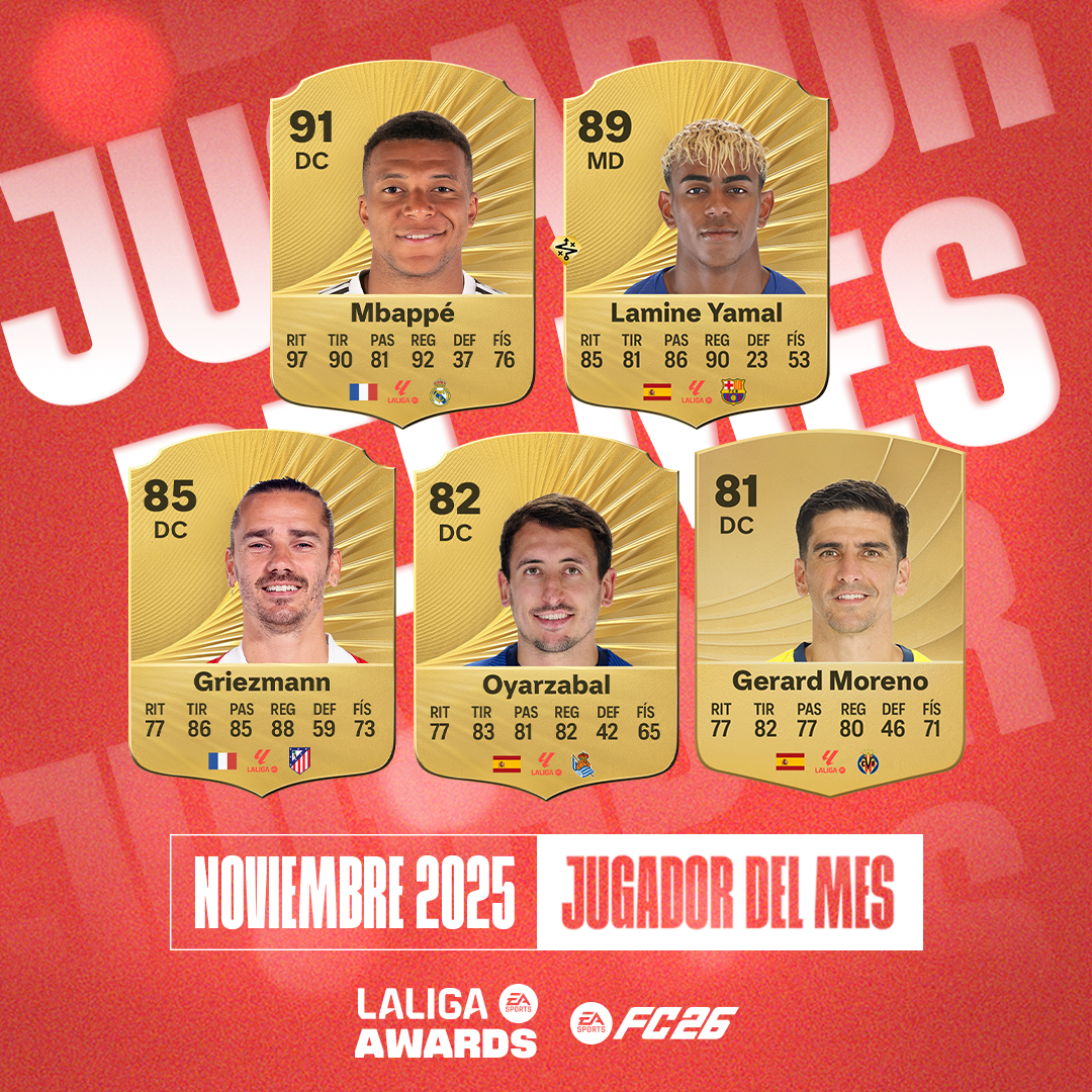 El indiscutible rendimiento de Mikel Oyarzabal y de Ander Barrenetxea vuelve a ser reconocido por LaLiga. En esta ocasión, el capitán txuri urdin ha sido nominado por los ‘Premios LaLiga’ entre los cinco candidatos a ‘mejor futbolista de noviembre’, mientras que ‘Barrene’ aspira a ganar el galardón a ‘mejor gol de noviembre’ gracias a su golazo desde el medio campo en El Sadar. La votación se cerrará el domingo.