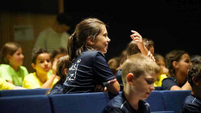 La tarde comenzó en el césped del estadio donde se dividieron en cuatro grupos para enfrentarse a los diferentes retos. Después de media hora, con la lluvia como protagonista, las actrices se enfrentaron a una "ardua" rueda de prensa realizada por los niños y niñas.