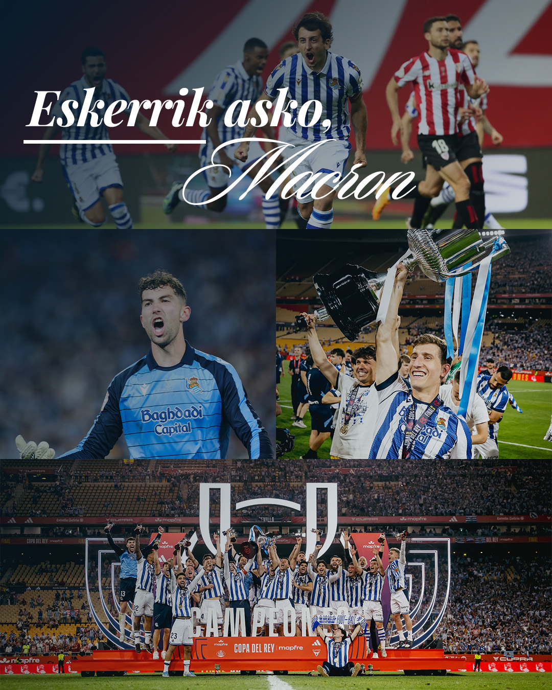 Desde estas líneas queremos trasladar nuestro más sincero agradecimiento a Macron por estos ocho años. Todavía quedan semanas de competición para seguir luciendo con orgullo esta marca que nos ha acompañado en esta etapa de tantos éxitos. Eskerrik asko, Macron!