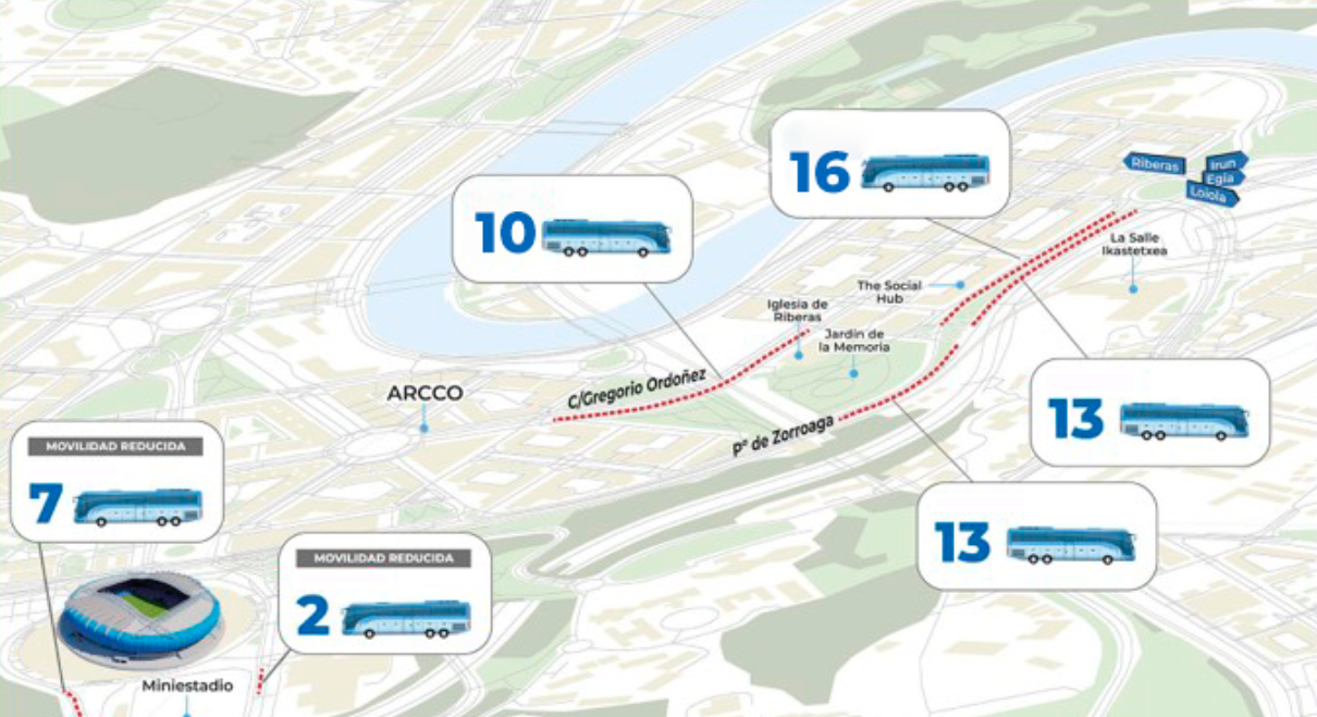 - Gregorio Ordoñez (dirección Riberas de Loiola): 10 autobuses