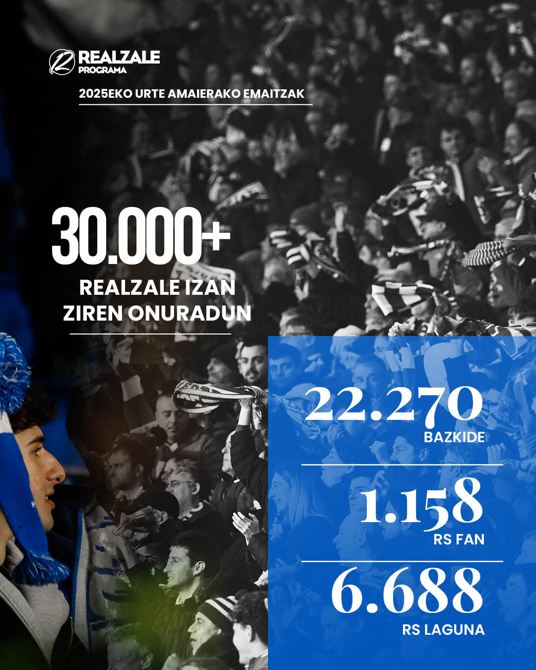 2025ean, 30.000 zalek baino gehiagok jaso zuten bi ekimenetako baten onura (Realzale Programa eta/edo klubari lagatzea), baita biena ere. Zenbaki hau honela banatzen da: 2.270 bazkide, 1.158 RS Fans eta 6.688 RS Laguna.