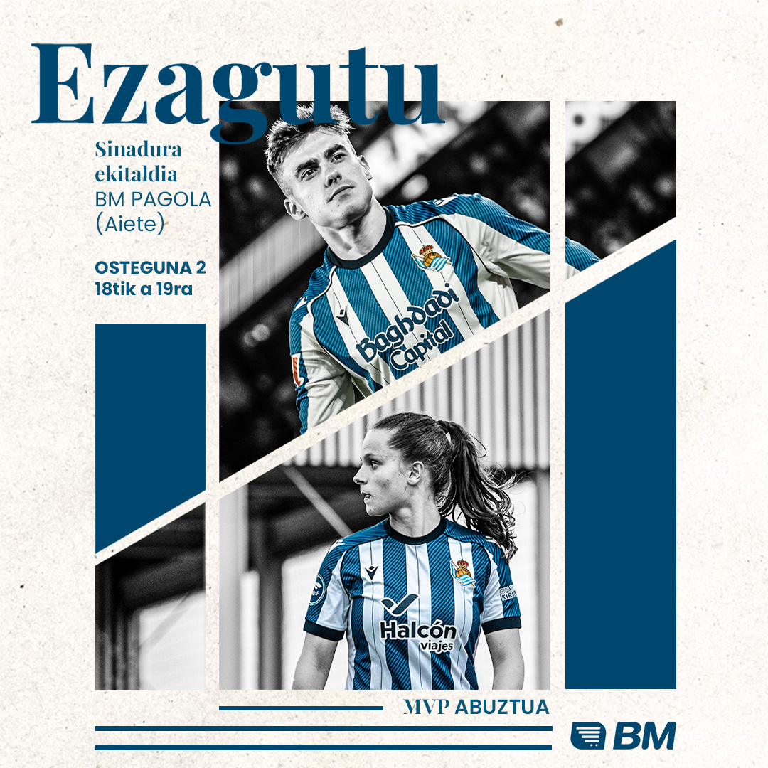 Pagolako BM Supermerkatuan, Donostiako Aiete auzoan, izango da bihar, urriak 2, denboraldi honetako MVPa banatzeko lehen ekitaldia. Abuztuko bi futbolari onenek, Ander Barrenetxeak eta Aiara Agirrezabalak, establezimenduko zaleen gozamenerako izango dira. Sinadura-ekitaldia 18etatik 19etara izango da, eta zozketaren bi irabazleei sariak banatuko zaizkie abuztuko MVPko boto-emaileen artean.