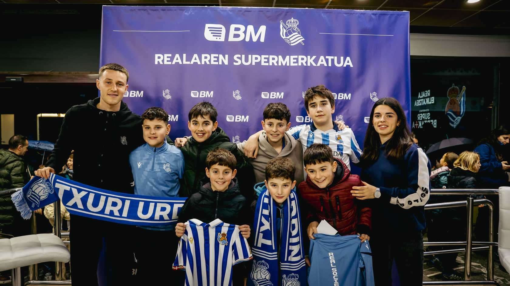Beñat Turrientes eta Intza Egigurenek ilusio txuri-urdinez betetako arratsalde bat partekatu zuten zaleekin Tolosan. Urtarrileko MVP sariak jasotzeaz gain dozenaka autografo sinatu zituzten eta BM gure babesleak Tolosako Rondilla kalean duen dendaraino hurbildu ziren txikiekin argazki mordoa atera zituzten. Zozketaren irabazle izan ziren Onintza Lopetegui eta Eunate Tarragona ere bere saria jaso zuten.