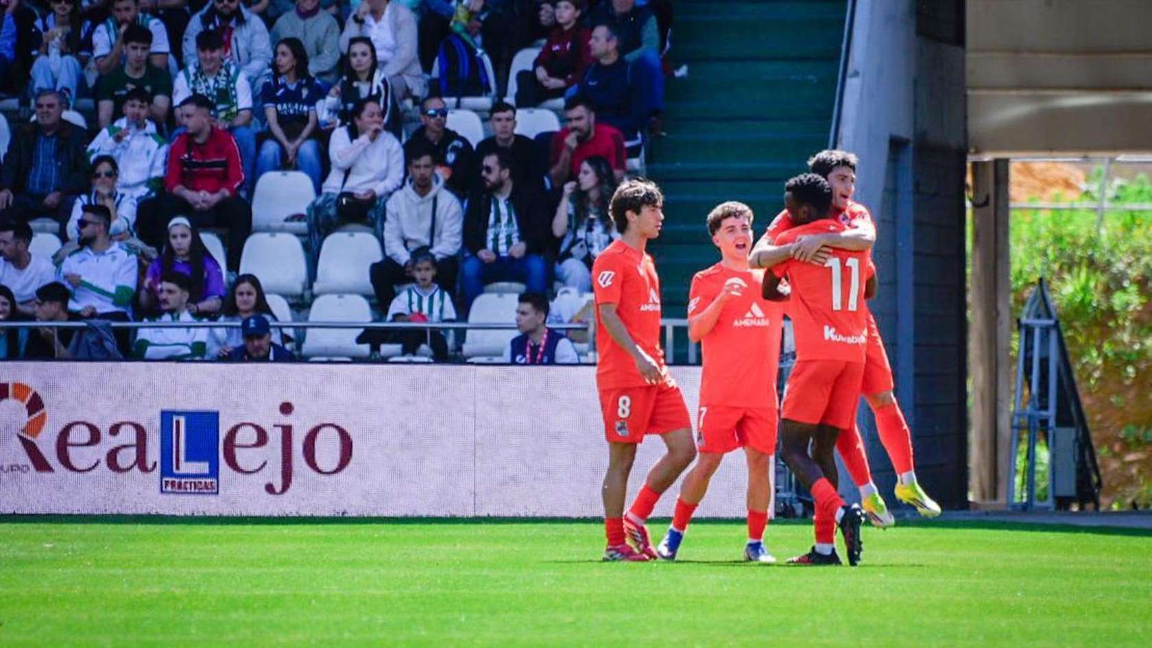 Lehen zatia erritmo biziarekin hasi da, bi taldeentzat abaguneekin. Lehenengo aukerarik argiena etxekoentzat izan da, Fragak ondo gelditu duen Fuentesen jaurtiketa bat. Handik gutxira, Ochiengek gol bikain batekin aurreratu ditu gipuzkoarrak. Donostiarrek erritmo horrekin jarraitu dute, eta Dani Diazek, berak egindako bakarkako jokaldi baten ondoren, epaileak VAR-ean kontsultatu behar izan duen penalti baten ostean, aldea handitu du hamaika metroetatik. Izugarria. Gure bigarren taldea hirugarrena egiteko zorian egon da atsedenaldia baino lehen Mikel Rodriguezen erdiraketa baten ostean, Carrerak zutoinaren kontra jo duen erremate batean. Minutuek aurrera egin ahala, Cordobak aldeak murriztu nahi izan ditu, baina Fraga bikain aritu da atepean jokaldi guztiak saihestuz.