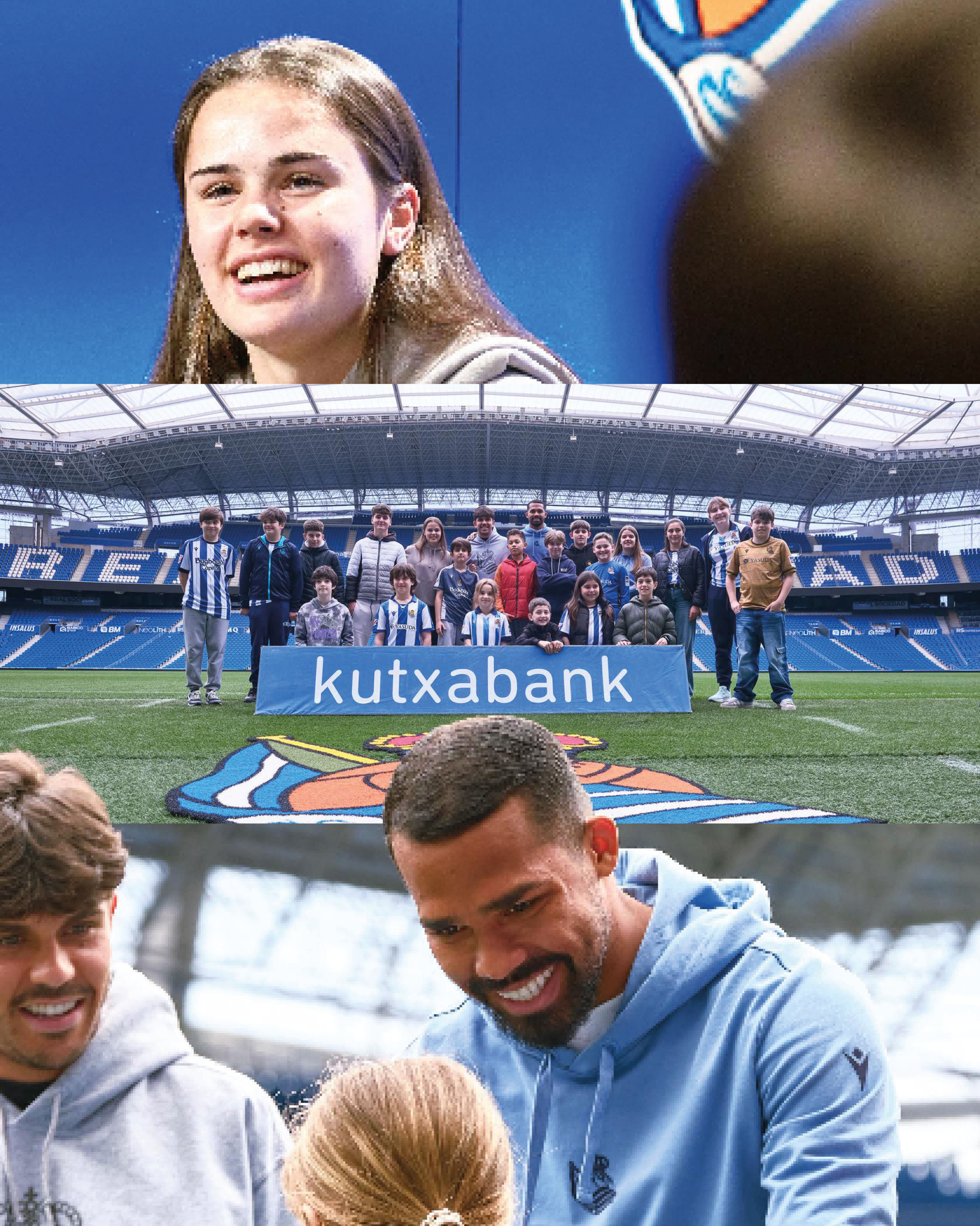 Kutxabank gure babesleak Anoetara bisita antolatu zuen bere bezeroentzat. 40 pertsona baino gehiago ibili ziren estadioko leku nagusietan, eta tarte dibertigarri bat partekatu zuten hiru "zizeroi" berezirekin: Yangel Herrera, Maren Lezeta eta Jon Mikel Aramburu. Klikatu BIDEOAN jardunaldia nolakoa izan zen ikusteko.