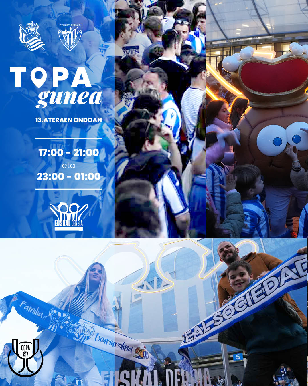 Asteazkenean Kopako beste gau handi bat biziko dugu. Derbiak foku guztiak Anoetan zentratzeko osagaiak biltzen ditu. Ordu batzuk lehenagotik motorrak berotzeko asmoz, txuri urdin klubak Topagunea izeneko topagunea antolatu du.