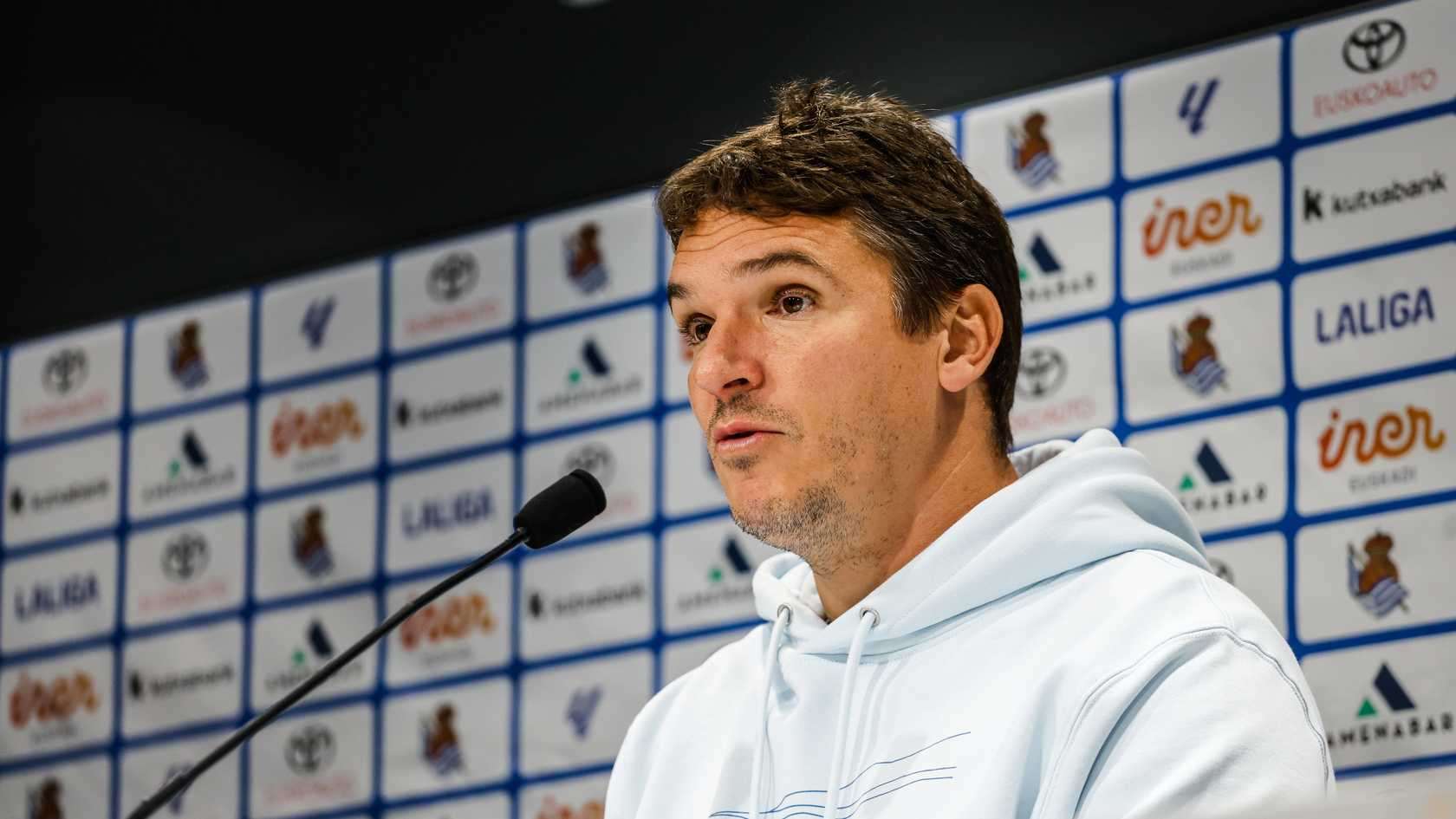 Jon Ansotegiren prentsaurrekoa Sanse - Real Valladolid partidaren atarian.