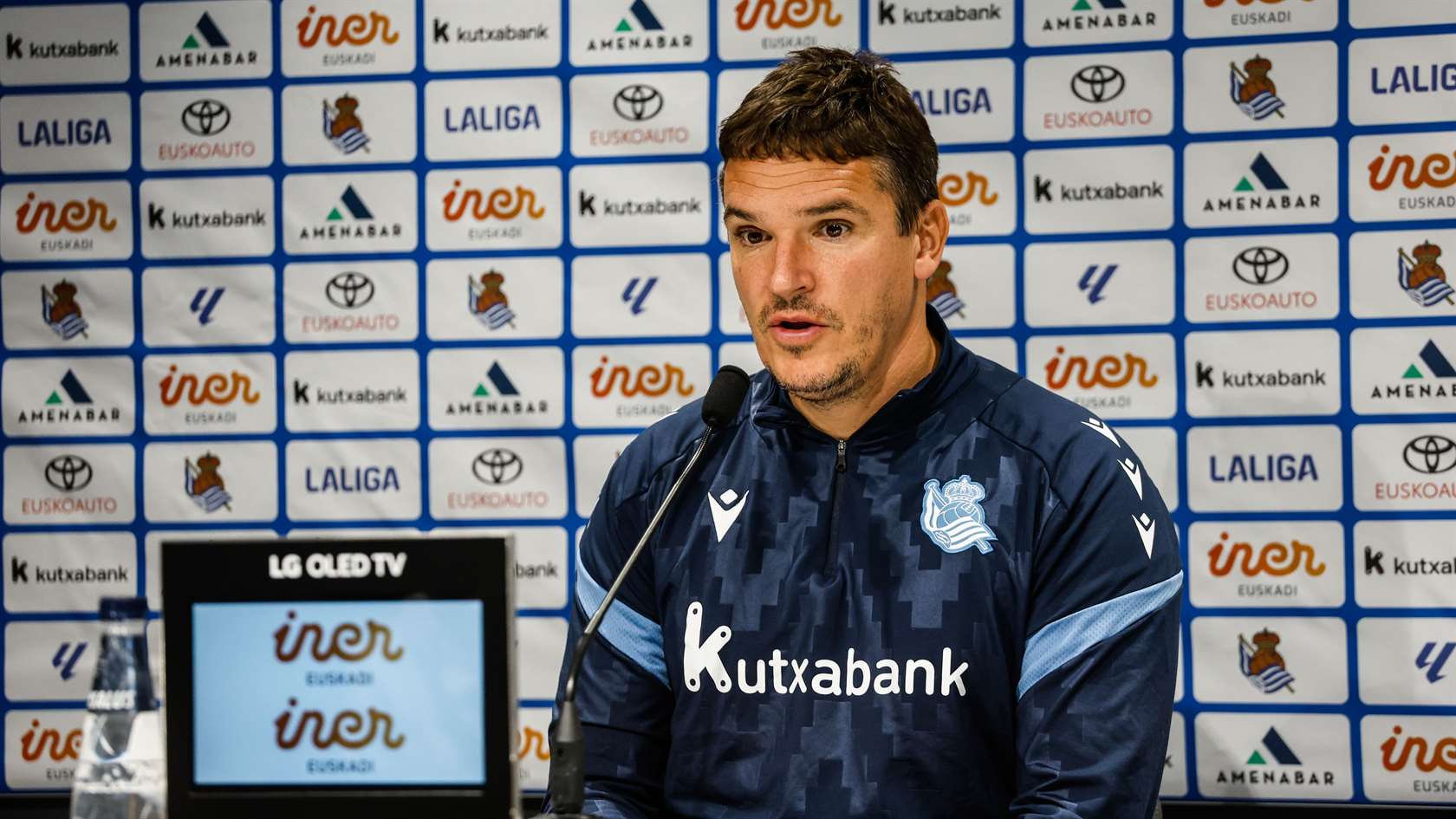 Jon Ansotegiren prentsaurrekoa Sanse - Albacete Balompié partidaren atarian.