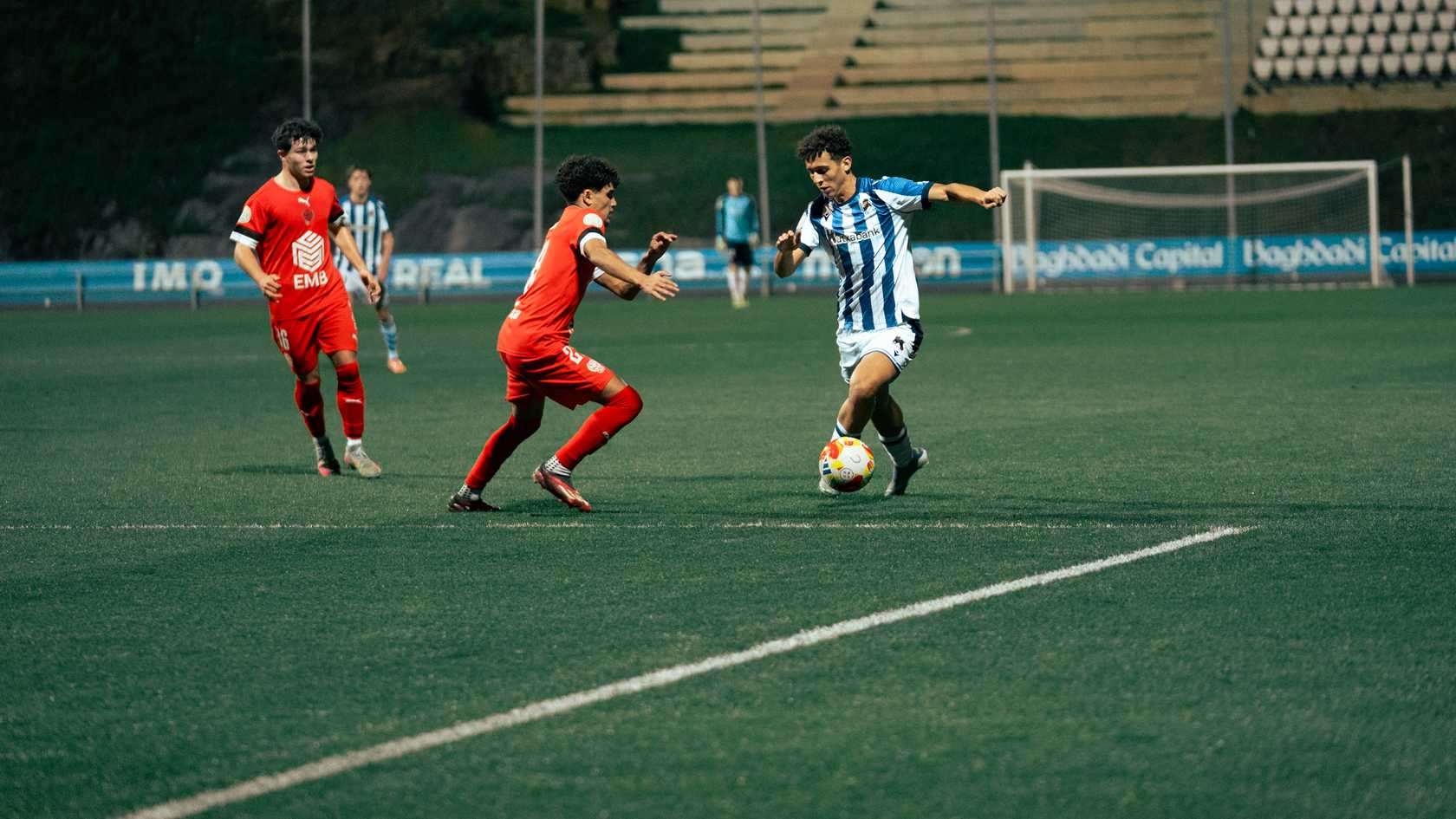 Real C-k berdinketa landua lortu du (0-0) CD San Ignacioren aurka gaur arratsaldean Zubietan, ia bigarren zati osoan zehar hamar jokalarirekin jokatuta, Peralek zalantzazko jokaldi batean txartel gorria ikusi ondoren. Txuri-urdinak nagusi izan dira lehen zatian eta iritsiera gehiago izan dituzte. Jakes Gorosabelek bi erremate izan ditu, baina ez dira ate barruan amaitu eta Adjabengek arrisku handia sortu du bere hegaletik. Aukerarik argiena langa gainetik atera den De Orueren burukada izan da. Gutxi nabarmentzeko lehen zatian. Donostiarrak nagusi, baina atsedenaldian golik ez.