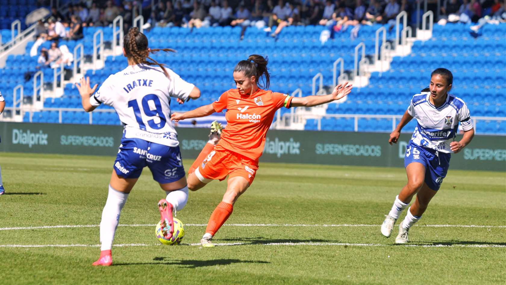 Lehen zatia oso parekatua eta lehiatua egon da. Bi aukera garbi baino ez ditugu ikusi, talde bakoitzarentzat bana, baina biak golean amaitu dira. Ordu laurdena bete eta gutxira, tenerifetarrak markagailuan aurreratu dira Iratxeren ezkerkada gurutzatu batekin, area barruan buelta erdia eman ondoren. Hamar minutu geroago, eta Paula Fernandezen asistentziaren ondoren, Aparik gauza bera egin du txuri-urdinentzat, area aurrealdetik gurutzatutako eskuinkada eder batekin. Nabarmentzeko jokaldi gutxi lehen zati oso orekatu batean.